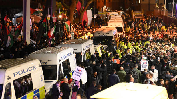 Перед матчем у стадиона прошли сразу несколько митингов — произраильские и пропалестинские.