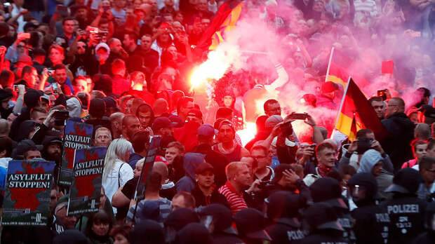 При этом уточняется, что на улицы Хемница на различные демонстрации вышли более 8 тыс. человек.