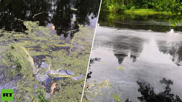 Как рассказал RT очевидец, 12 июня у реки чувствовался «неприятный резкий запах», а позднее на поверхности реки можно было увидеть «синюю масляную плёнку».