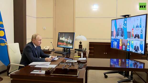 В понедельник, 10 января, президент России Владимир Путин принимает участие во внеочередной сессии Совета коллективной безопасности Организации Договора о коллективной безопасности. Встреча проходит в режиме видеоконференции под председательством Армении. Главная тема — ситуация в Казахстане и меры по её нормализации.