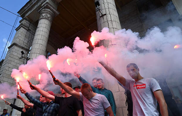 В итоге руководство «112 Украина» было вынуждено отменить показ. В заявлении, размещённом на сайте компании, подчёркивалось, что ни президент Владимир Зеленский, ни премьер-министр (тогда этот пост занимал Владимир Гройсман. — RT) не осудили «циничные действия ура-патриотов», обстрелявших телеканал.