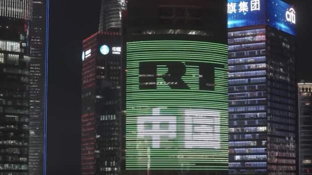 На одном из небоскрёбов в центре Шанхая показали ролик телеканала RT.