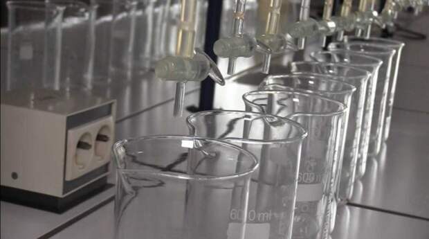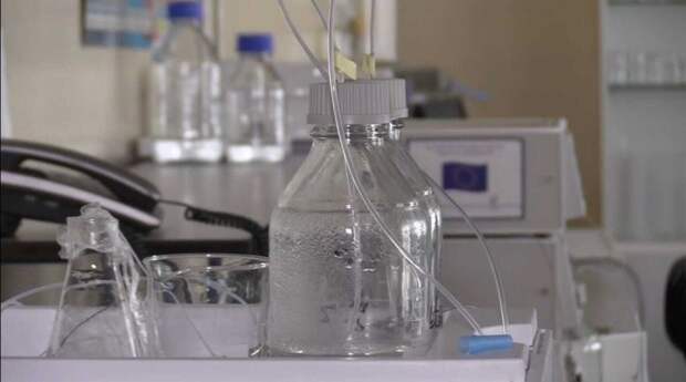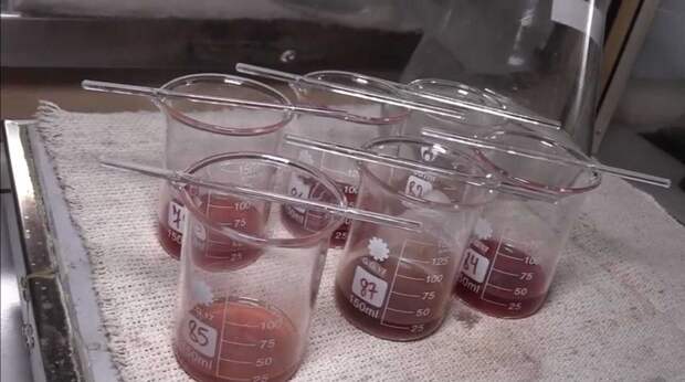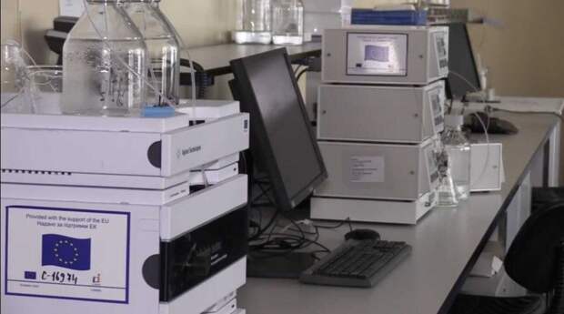 В одном из помещений лаборатории при проверке российские военные обнаружили повышенный радиационный фон. В этом кабинете прямо на полу были складированы ёмкости с неизвестными веществами.