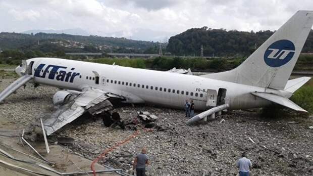 1 сентября при посадке в аэропорту Сочи самолёт выкатился за пределы ВПП и скатился в русло реки.