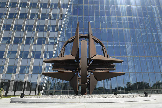 Символ НАТО перед штаб-квартирой альянса в Брюсселе AFP John Thys