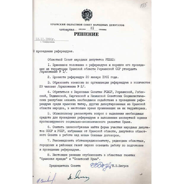 Решение Крымского областного совета о проведении референдума от 12 ноября 1990 года Общественное достояние