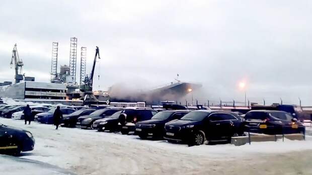 Пожар на «Адмирале Кузнецове» произошёл 12 декабря во время сварочных работ в районе первого энергоотсека, когда искра попала в трюмное помещение с мазутом.