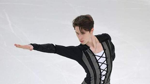 Андрей Лазукин занимает первое место по итогам короткой программы в финале Кубка России по фигурному катанию в Великом Новгороде.