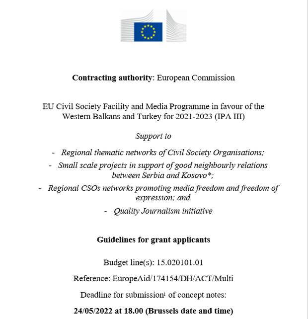 Финансирование при этом будет выделяться в рамках «Программы ЕС по содействию гражданскому обществу и СМИ для Западных Балкан и Турции на 2021—2023 год» (CSF).