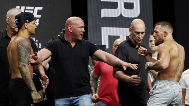 Опубликовано видео дуэли взглядов, которая состоялась перед боем ирландца Конора Макгрегора с американцем Дастином Порье на турнире UFC 264.