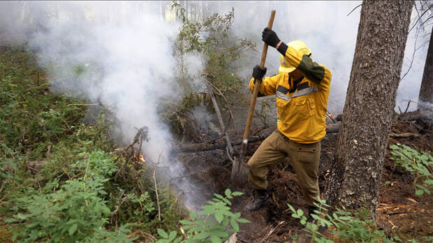 Обкапываешь дымящуюся землю, убираешь остатки деревьев, и подземный пожар в этом месте дальше уже не пойдёт. Под толстым слоем мха сразу начинается вечная мерзлота. Лёд и пламя буквально соседствуют в тайге. Копать очень сложно. Корни деревьев не могут прорасти в вечную мерзлоту, поэтому ползут вширь. Не столько копаешь, сколько рубишь лопатой землю. Из-за смога тяжело дышать. Уже после обработки 2—3 м кромки пожара хочется передохнуть. Профессиональный лесной пожарный обрабатывает до 200 м в день.