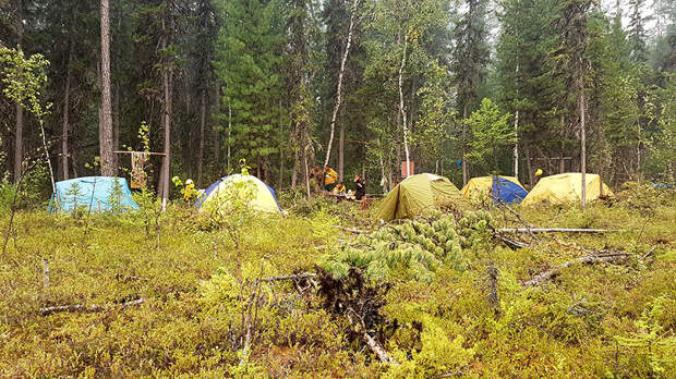 Лагерь «Авиалесоохраны» стоит на краю поляны. Здесь живут и работают всего восемь человек. В трёх километрах по кромке пожара с одной и другой стороны расположены такие же лагеря со своими огнеборцами — это МЧС и местные региональные лесные пожарные. На месте никакой координации между командами нет. Лагеря живут автономно, даже в гости друг к другу не ходят.