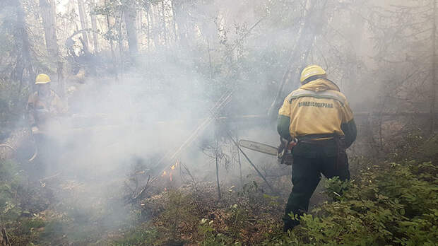 Сейчас в тайге низовой и подземный пожары. При низовом на земле горят сухие ветки, упавшие деревья. Подземный — когда горит толстый слой мха.