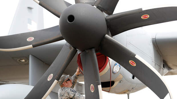 Военно-транспортный самолёт ВВС США C-130 Hercules совершил аварийную посадку в аэропорту Одессы из-за отказа двигателя.
