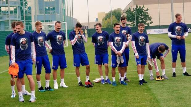 Как сообщает «Матч ТВ», футболисты вышли на первую тренировку сборной после чемпионата мира в России с накладными усами и в футболках с изображением Черчесова.