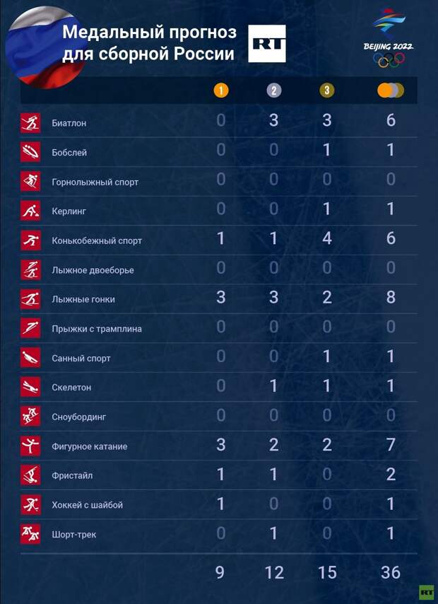 Сложно сказать, какое при этом место на пекинской Олимпиаде займёт отечественная команда, но с десятью золотыми медалями можно смело рассчитывать на место в первой тройке. В неё также наверняка попадут традиционно мощные Норвегия и Германия.