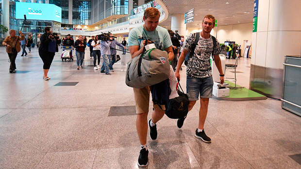 Российские моряки задержанного на Украине судна в московском аэропорту Домодедово Sputnik/РИА Новости
