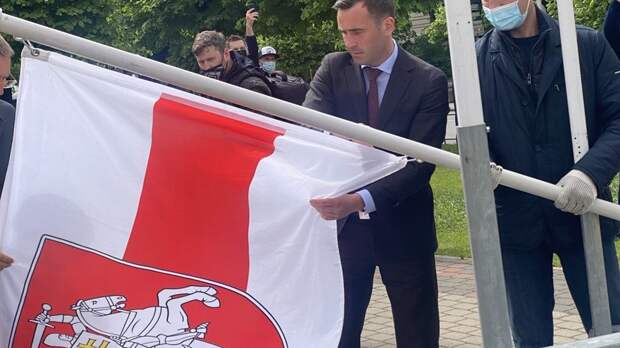 Мэр Риги Мартиньш Стакис на чемпионате мира по хоккею заменил государственный флаг Белоруссии на бело-красно-белый, который был официальным в 1991—1995 годах.