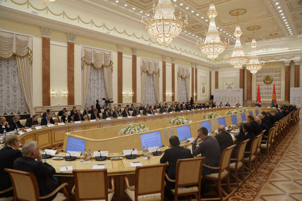 Мы заинтересованы в том, чтобы любые конфликты разрешались путём спокойного, нормального, как сейчас модно говорить, инклюзивного диалога. Это касается и внутриполитической ситуации, это касается и нашей готовности к диалогу на внешнем контуре. Мы знаем не понаслышке, что такое конфликт, война, революция. Мы прошли через две мировые войны — вернее, две мировые войны прокатились через нашу страну. И мы знаем, какие последствия они несут для белорусского народа. Поэтому мы никогда не были и не собираемся быть источником напряжённости. Мы всегда говорили, что мы заинтересованы в диалоге. Мы всегда лишь отвечали на те рестриктивные меры, которые наши партнёры предприняли по отношению к Белоруссии. Мы и сейчас готовы садиться за стол переговоров с любым нашим партнёром, которые изъявят желание на сей счёт. Но, к сожалению, пока мы не слышим ни одного здравого голоса в этом хоре…