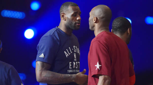На другом снимке оба баскетболиста сидят на скамейке запасных, Джеймс при этом положил голову на плечо Брайанта.
