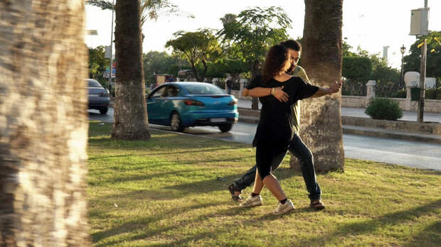 Искусство создаётся не только с помощью камней или полотен — его можно творить собственным телом. Так поступают ещё двое героев «Сирийского танго»: они танцуют прямо на улицах, площадях, у фонтанов, перед магазинами.