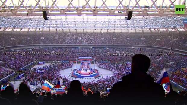 На стадионе «Лужники» в Москве проходит концерт, посвящённый Дню воссоединения Крыма и Севастополя с Россией. В 2014 году в этот день Владимир Путин подписал договор о принятии Республики Крым и города Севастополя в состав Российской Федерации. RT ведёт прямую трансляцию.