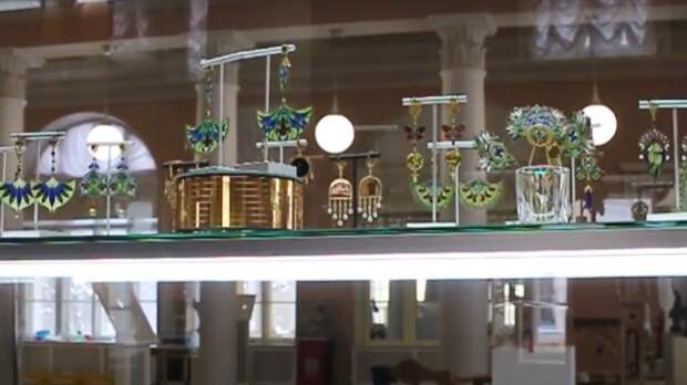 На экспозиции представлено более 500 работ, выполненных отечественными ювелирами, скульпторами и фарфористами.