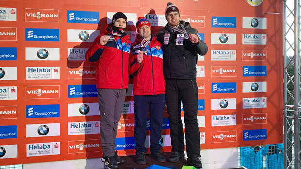 Семён Павличенко и Роман Репилов на церемонии награждения призёров чемпионата Европы по санному спорту спели гимн России а капелла из-за технических проблем с фонограммой.
