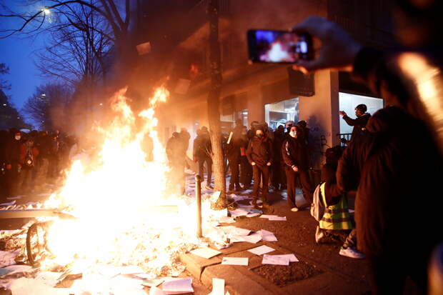 По информации BFMTV, во время акций протеста в 20-м округе Парижа сгорели как минимум шесть автомобилей и грузовик, демонстранты также повредили несколько витрин банков и агентств недвижимости.