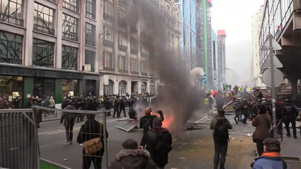 В субботу, 28 декабря, на улицы французских городов вышли активисты движения «жёлтых жилетов». В Париже полицейские применили слезоточивый газ к участникам шествия. RT вёл прямую трансляцию.