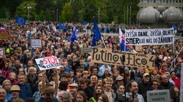 Около 10 тыс. человек приняли участие в акции протеста перед зданием правительства в Братиславе.