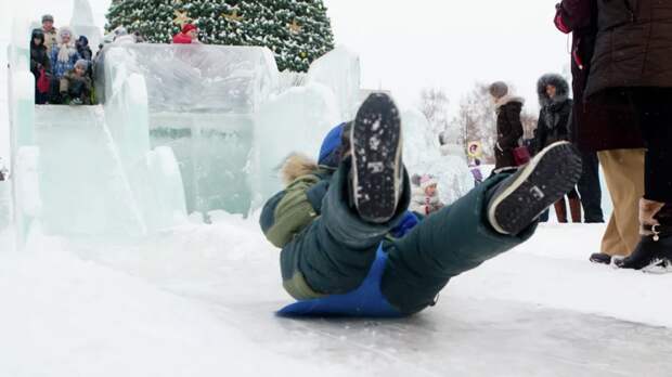 В Челябинске из-за аномального тепла закрыли горки для катания в ледовых городках.