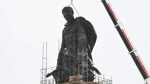 В Тверской области начали устанавливать главный монумент мемориала Советскому солдату. 25-метровая бронзовая скульптура будет размещена на холме возле деревни Хорошево.
