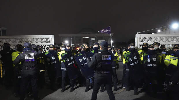 Войска, обеспечивающие военное положение в Южной Корее, пытаются проникнуть в здание Национального собрания республики.