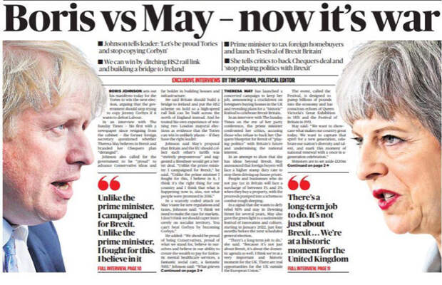 Между тем газета The Sunday Times сочла заявления экс-главы МИД в отношении Мэй объявлением «войны».