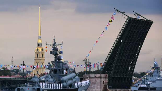 «В параде будет задействовано 46 боевых кораблей и подводных лодок всех флотов, в том числе самые современные из поступающих сегодня на вооружение.