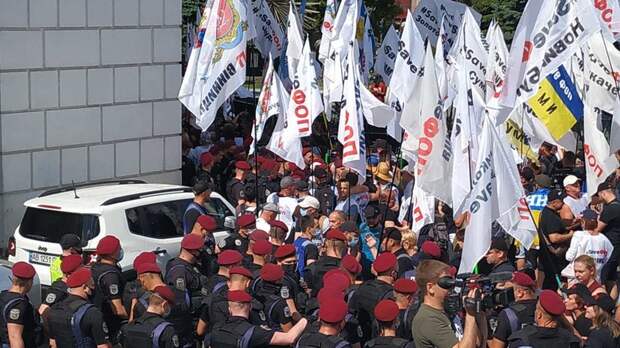 Ранее сообщалось, что несколько сотен активистов провели акцию у офиса президента Украины, часть присутствующих требовала импичмента главы государства Владимира Зеленского.