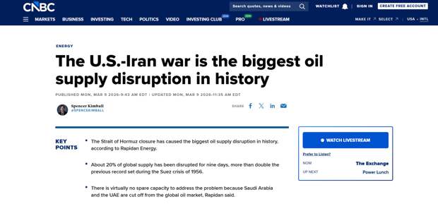 В свою очередь CNBC называет войну США против Ирана «крупнейшим в истории сбоем поставок нефти».