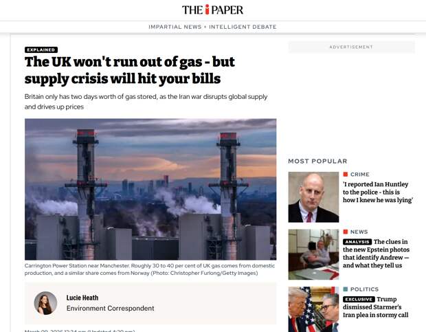 «Это не означает, что запасы вот-вот закончатся, — уточняет The i Paper. — Примерно 30-40% газа в Великобритании по-прежнему производится внутри страны, в то время как аналогичная доля поступает по трубопроводам из Норвегии. Остальное поступает в виде СПГ, который доставляется в Великобританию танкерами из США, с Ближнего Востока и от других мировых поставщиков».