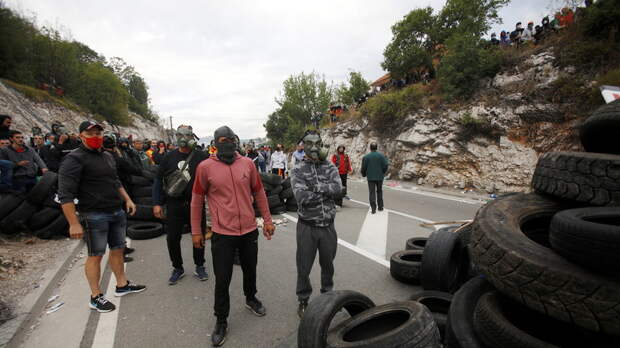 Отмечается, что демонстранты выступают против проведения церемонии интронизации митрополита Черногорско-Приморского Иоанникия Сербской православной церкви (СПЦ) в Цетинском монастыре.
