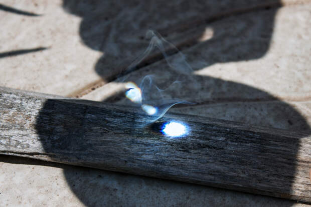 Линзой, так же, как и зеркалами, можно сфокусировать солнечный свет в нужной точке и заставить тлеть горючие материалы.