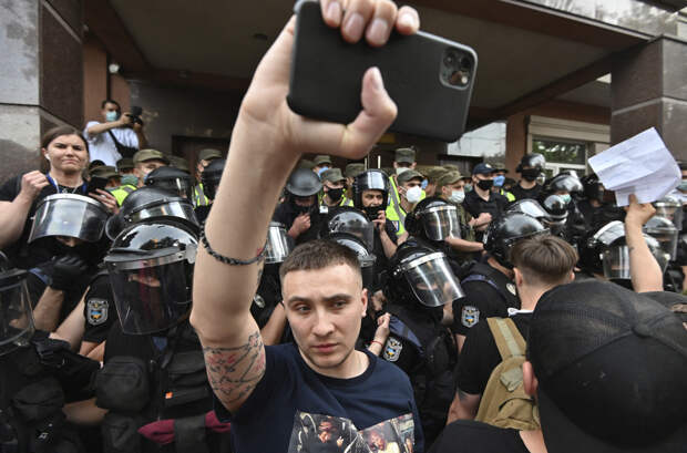«Зеленский растерял поддержку русскоязычных и на этом фоне начал откровенно заискивать перед националистами, стараясь не ограничивать их деятельность. По этой причине, видимо, полиция получила указание не вступать в конфронтацию на Банковой и дать националистам возможность выпустить пар. Зеленский испытывает страх перед радикальной улицей», — заявил в комментарии RT заместитель директора Института истории и политики МПГУ Владимир Шаповалов.