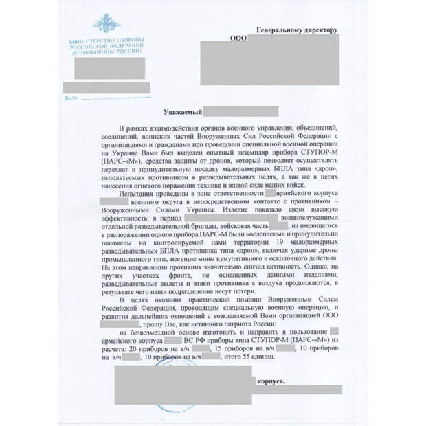 Конечно. Получил даже официальное письмо от высокопоставленного военачальника с просьбой отправить ещё партию антидронов. Мы сделали и отправили.
