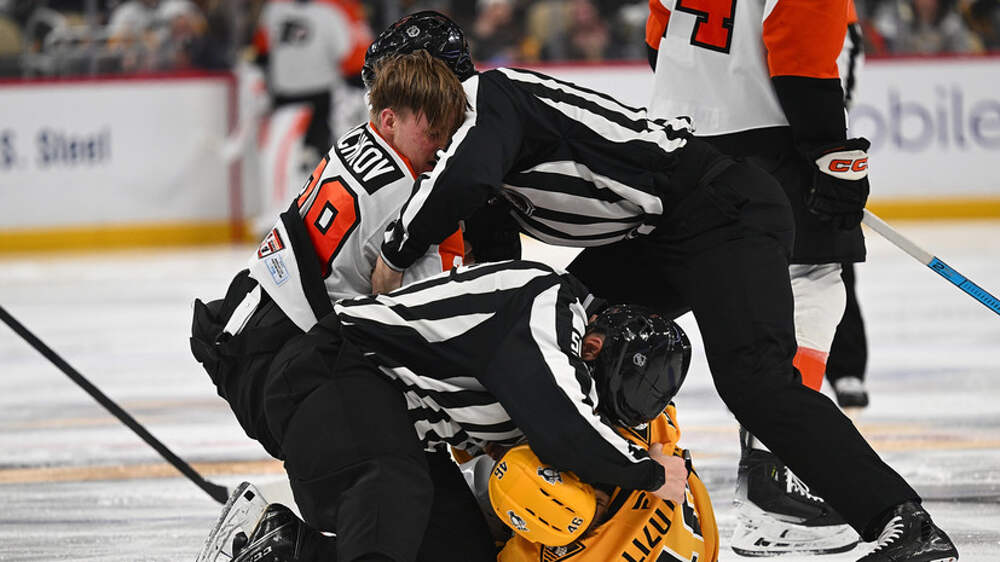 Нападающий «Филадельфия Флайерз» Матвей Мичков устроил потасовку с защитником «Питтсбург Пингвинз» Блейком Лизоттом. На 42-й минуте встречи россиянин вступился за одноклубника — нападающего Денвера Барки, против которого провёл силовой приём Лизотт. Хоккеисты нанесли друг другу несколько ударов, а